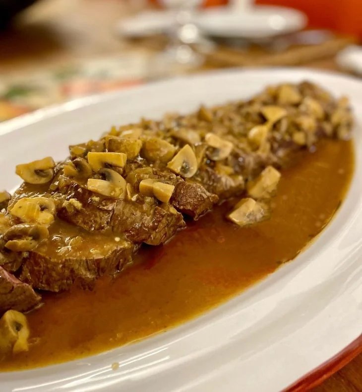 Filé mignon ao molho de cogumelos. Saboroso e dinâmico para um almoço em casa.